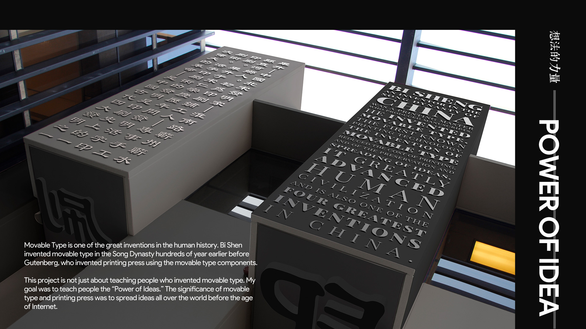 In this conceptual design project, I pay homage to the remarkable invention of movable type, one of the most significant milestones in human history.